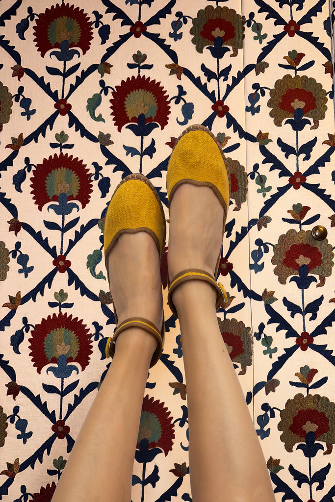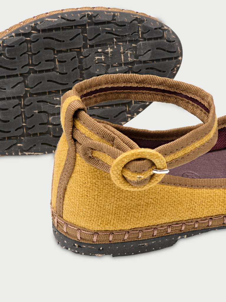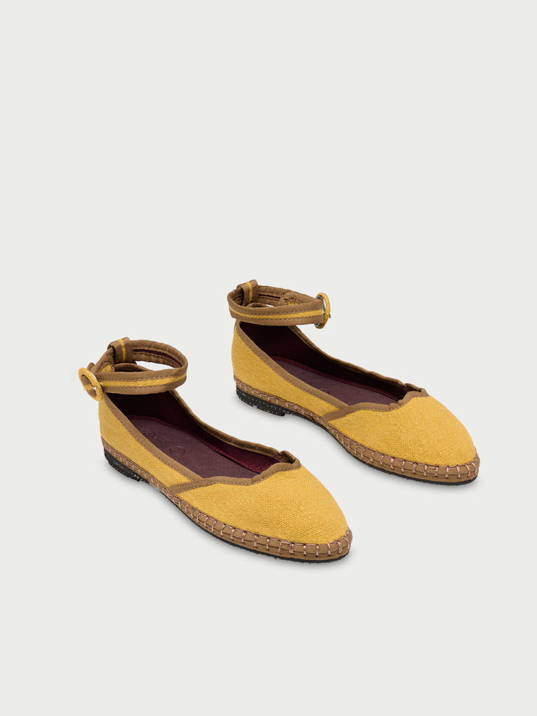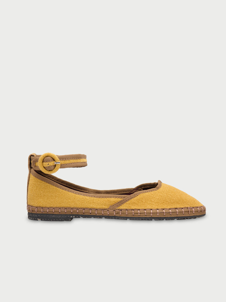 • Bailarina de lino en color mostaza con ribetes mostaza.