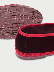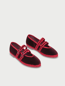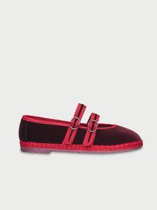• Mercedita de terciopelo en granate con ribete rojo y doble tira de terciopelo rojo con cierre de hebilla.