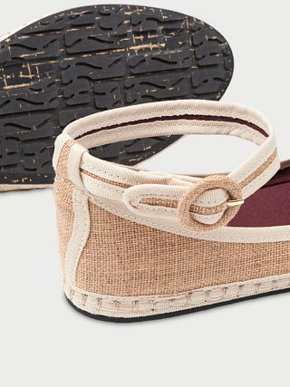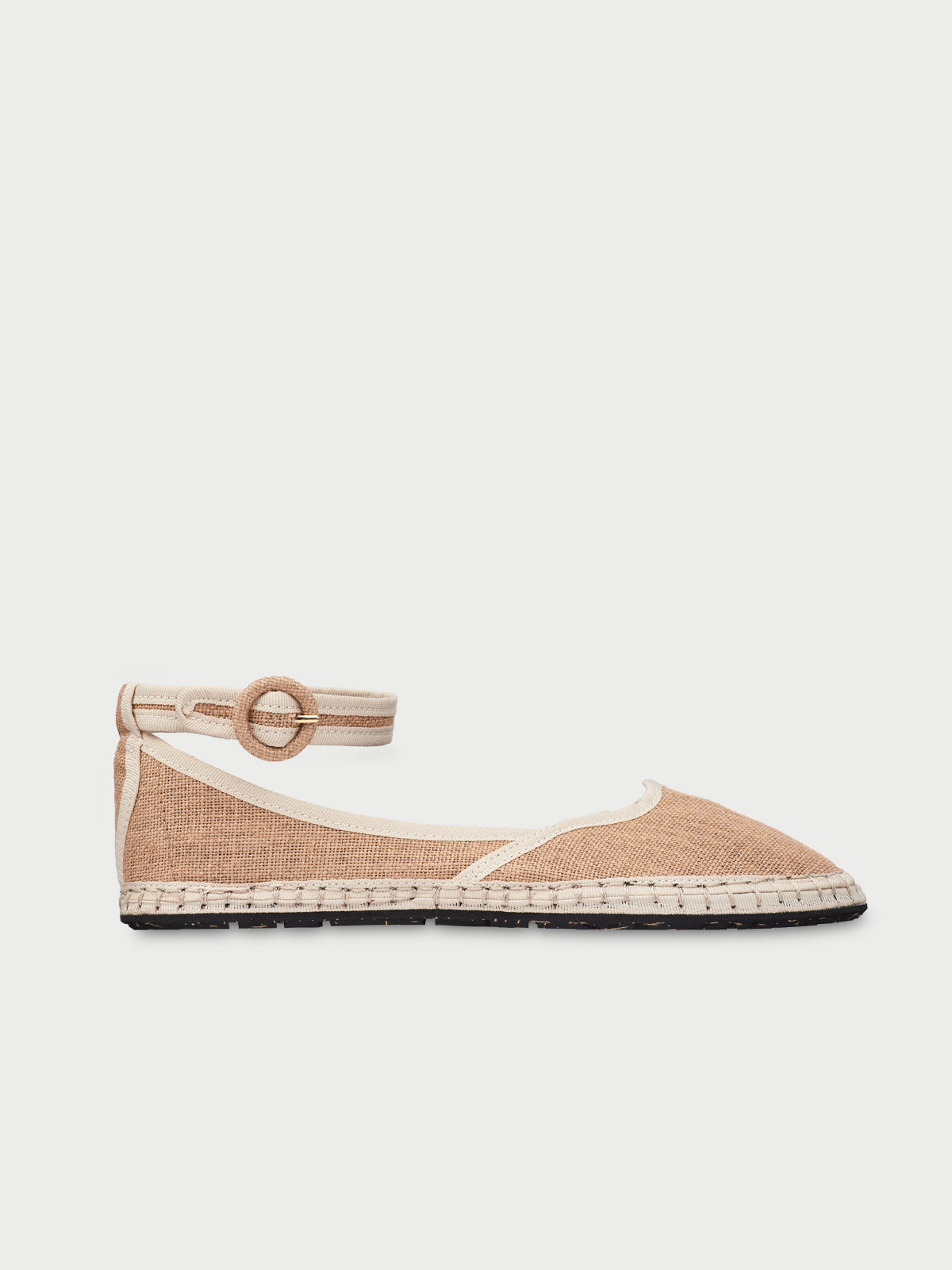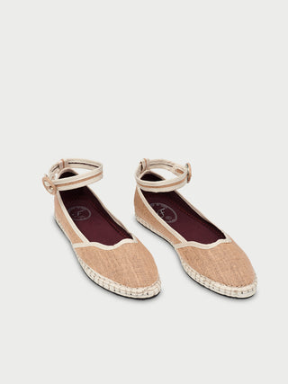 • Bailarina de lino en color beige con ribetes en beige claro.