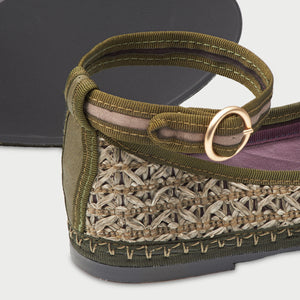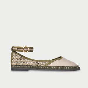 • Bailarina de seda y rafia en caqui con ribetes caqui.