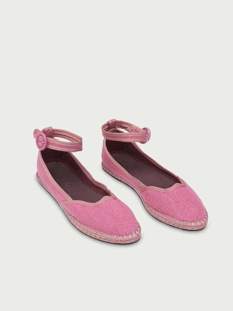 • Bailarina de lino en color rosa con ribetes rosas.