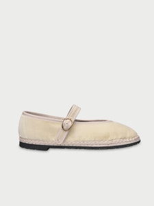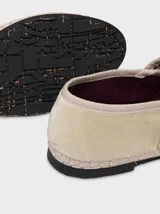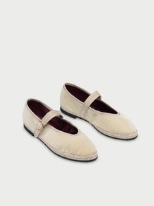 • Velvet ballerina v-hole in cream with cream piping.