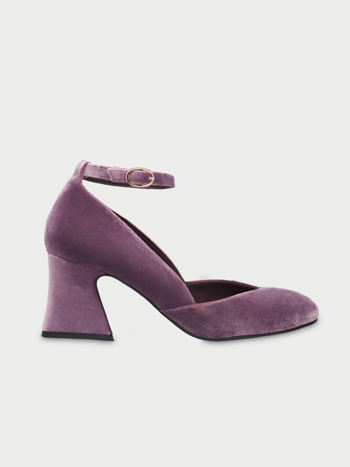 • Zapatos de salón de terciopelo lila con forro de piel.