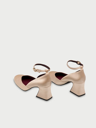 • Zapatos de salón de satén color blanco roto con forro de piel.