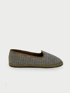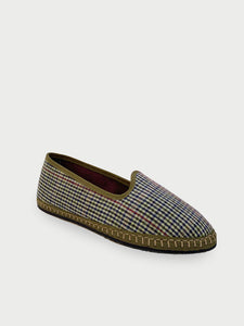 • Houndstooth slipper in green & blue with khaki green piping.
