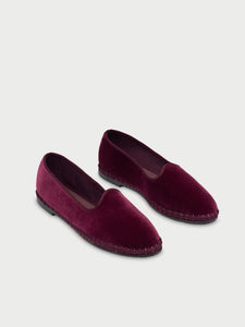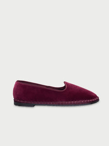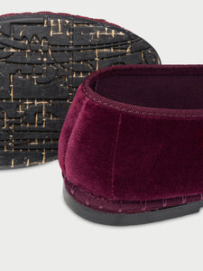 • Velvet slipper in burgundy with burgundy pipping.