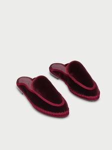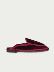 • Velvet belgian in burgundy with garnet instep and garnet piping.