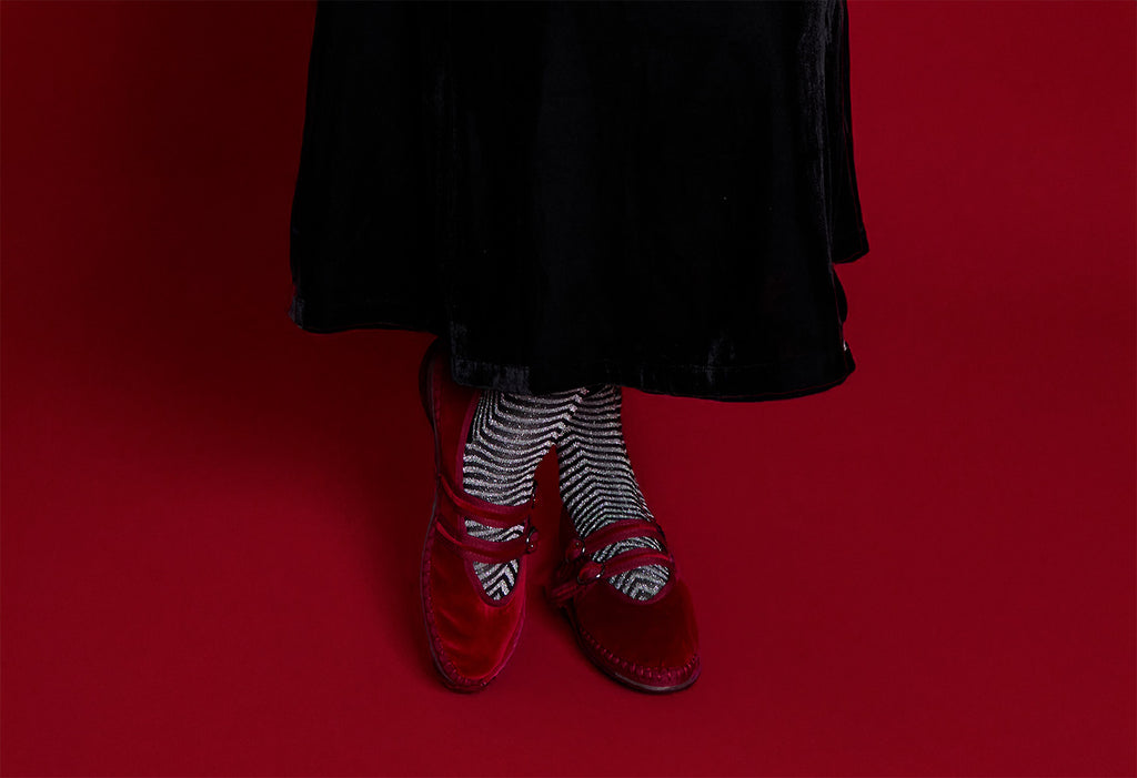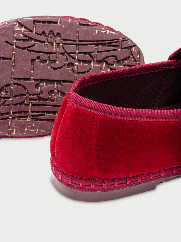 • Velvet mary jane in red with red piping and double red velvet straps with buckle as closure.