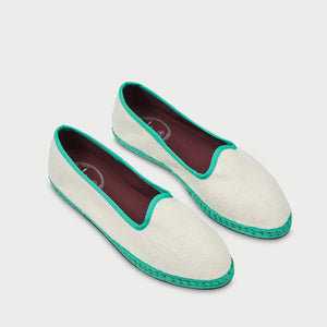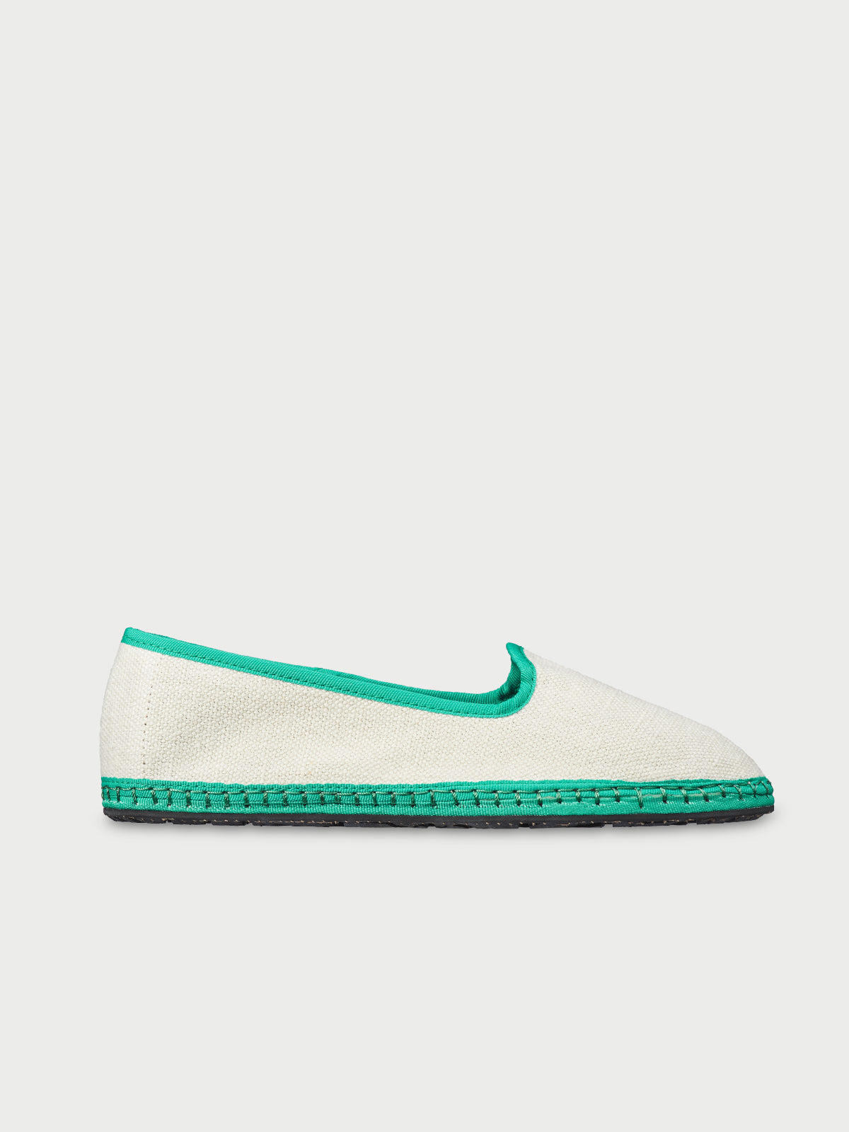 • The outside of the shoe is 100% linen, and the inside of the shoe is 100% organic cotton with anti-bacterial treatment.
