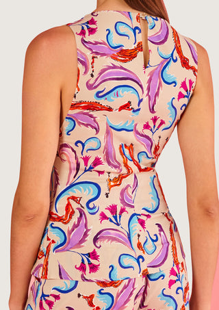 • Beige, fuchsia, blue & orange v-shape neckline sleevless top.Cut-outs in front.