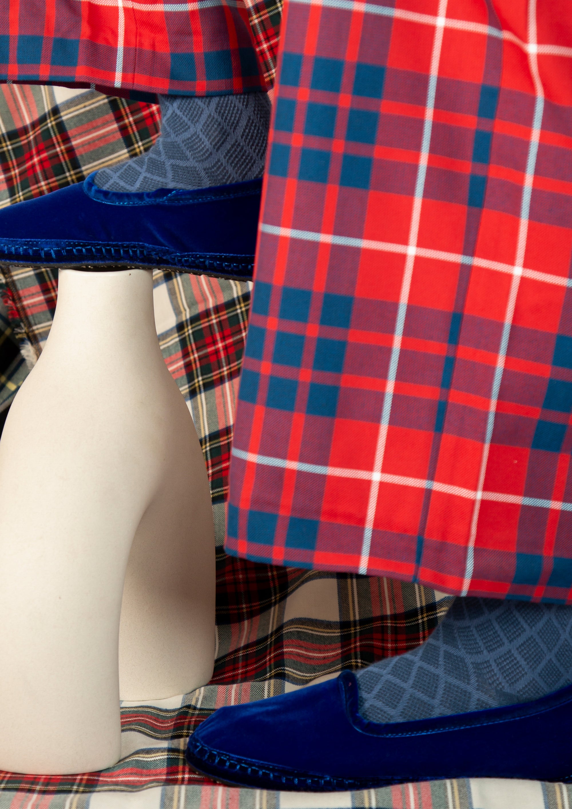• Velvet slipper in dark blue with dark blue velvet piping.