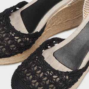 • The wedge is made of natural jute. Heel 11 cm high and platform 3 cm wide.