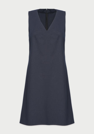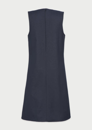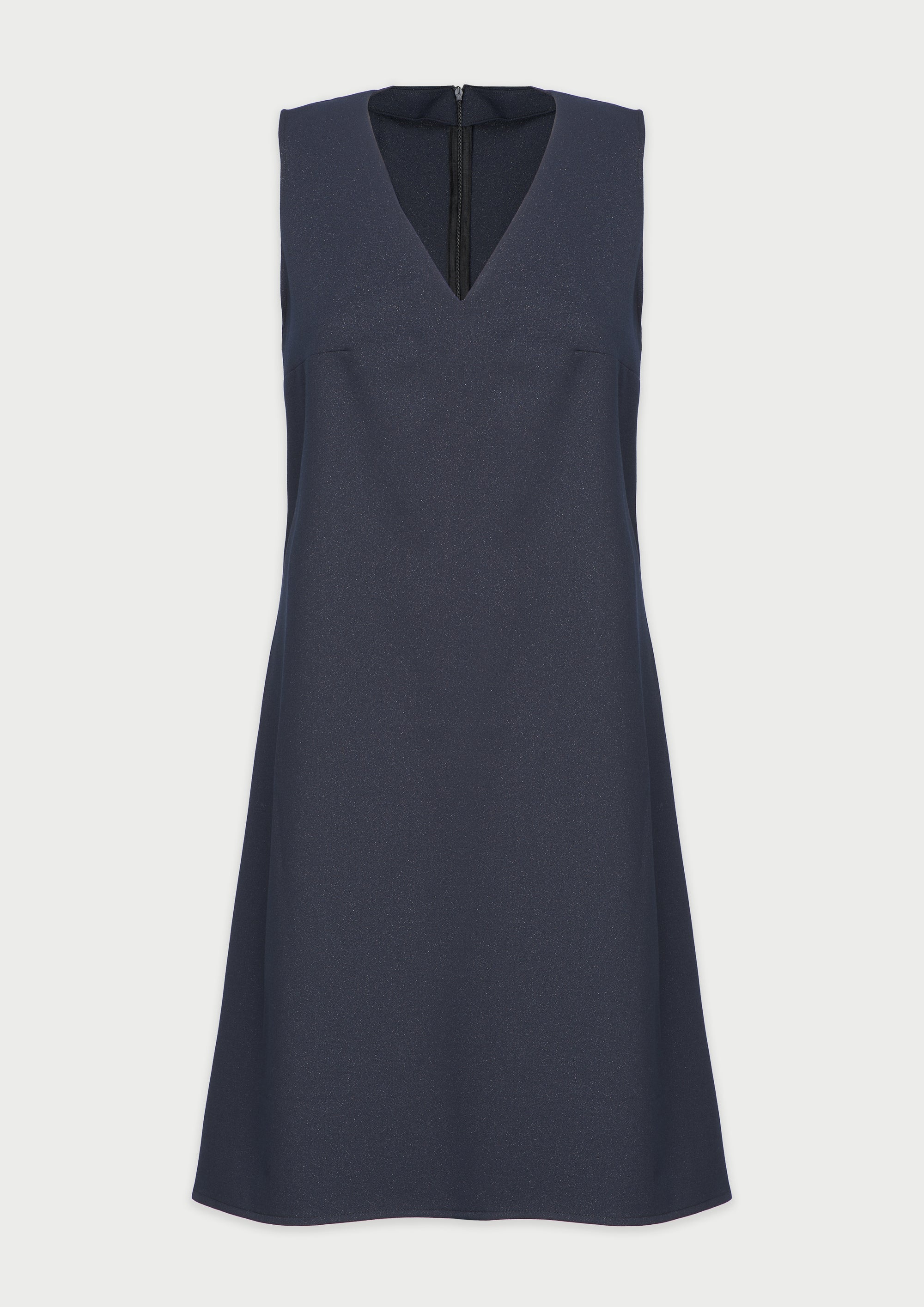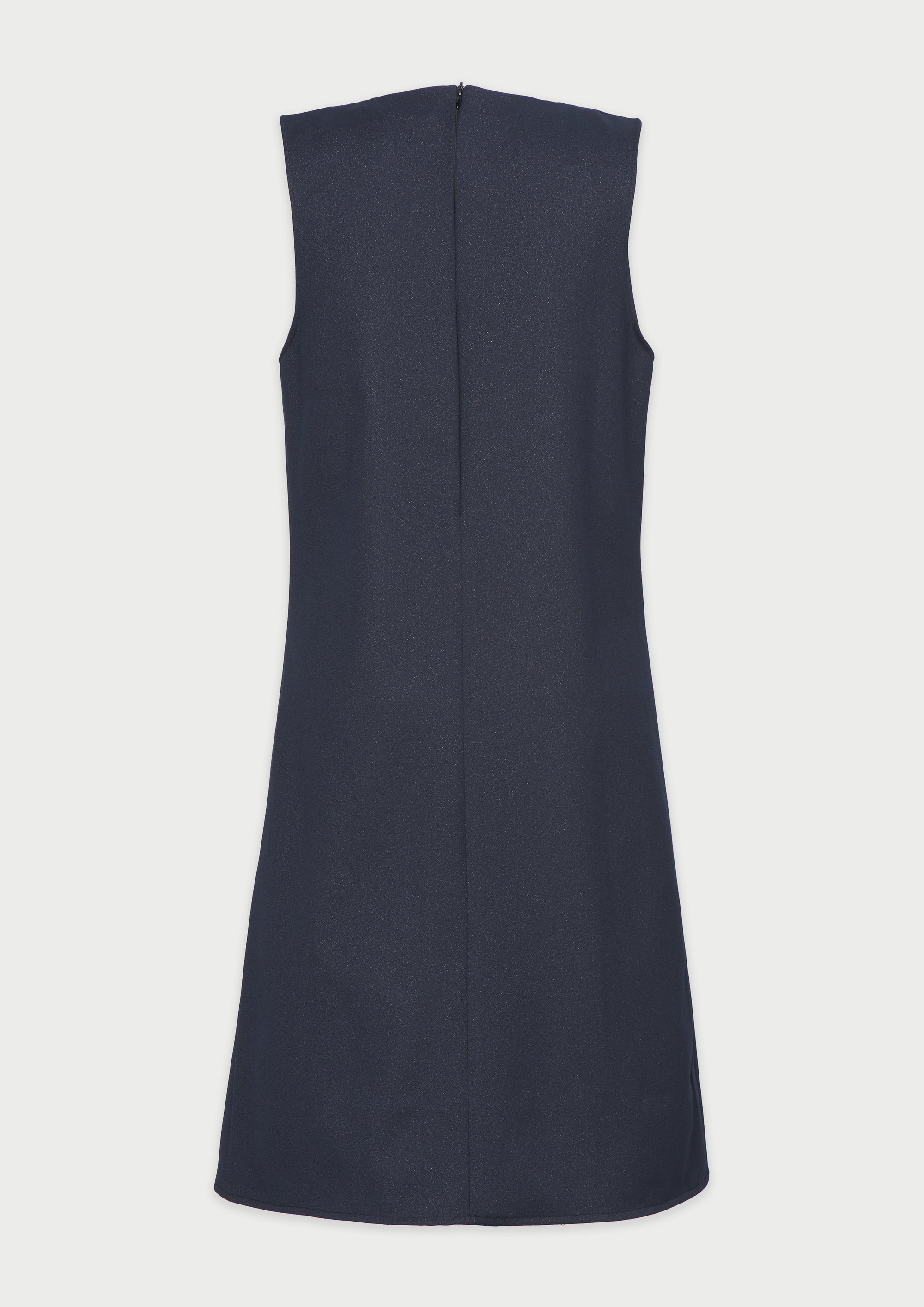 • Navy blue fabric made of 54% polyester, 44% virgin wool, 2% elastane with shiny details