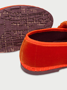 • Velvet mafalda in orange with orange piping and orange velvet lace.