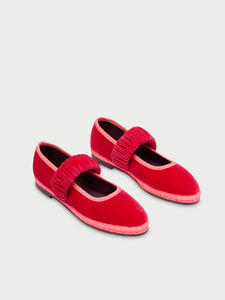 • Velvet mafalda in fuchsia with pink piping and fuchsia velvet lace.