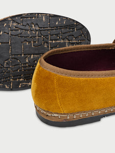 • Velvet ballerina v-hole in mustard with mustard piping.