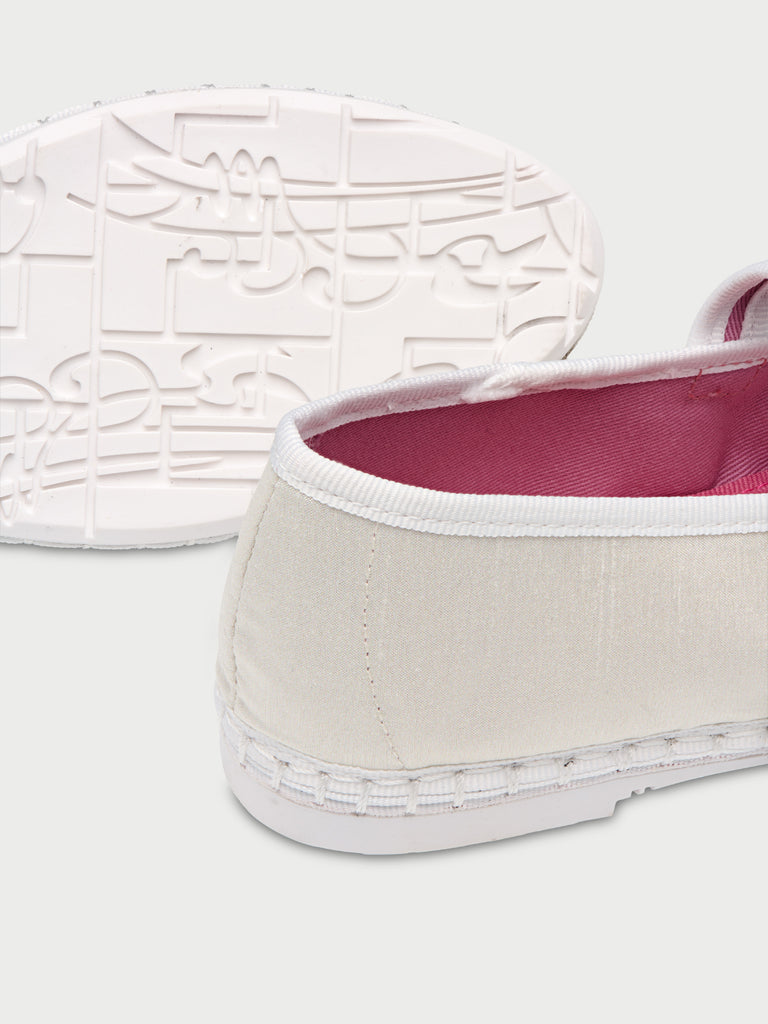 • The outside of the shoe is 100% silk, and the inside of the shoe is 100% organic cotton with anti-bacterial treatment.